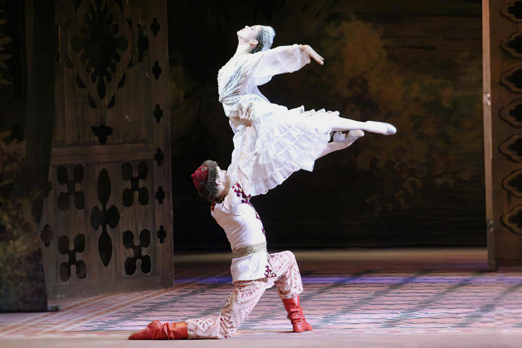 В 1941 году татарский художник Баки Урманче перебрался из Москвы в Алма-Ату: его пригласили участвовать в подготовке к 100-летию поэта Абая. Период жизни художника в Казахстане пришелся на военное время и был не простым, но вместе с тем плодотворным. Там он написал целую портретную серию видных деятелей культуры, среди них — портрет известной казахской танцовщицы Шары Жандарбековой. Для создания образа героини художник использует закономерности орнаментального искусства.